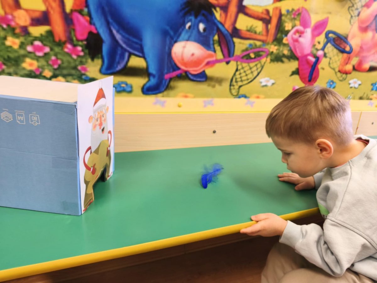 Poniedziałkowa logopedia w grupie Maleństw. Maluszki usprawniały dziś narządy artykulacyjne wysyłając całuski oraz puszczając bańki. Śmiechom i radości nie było końca