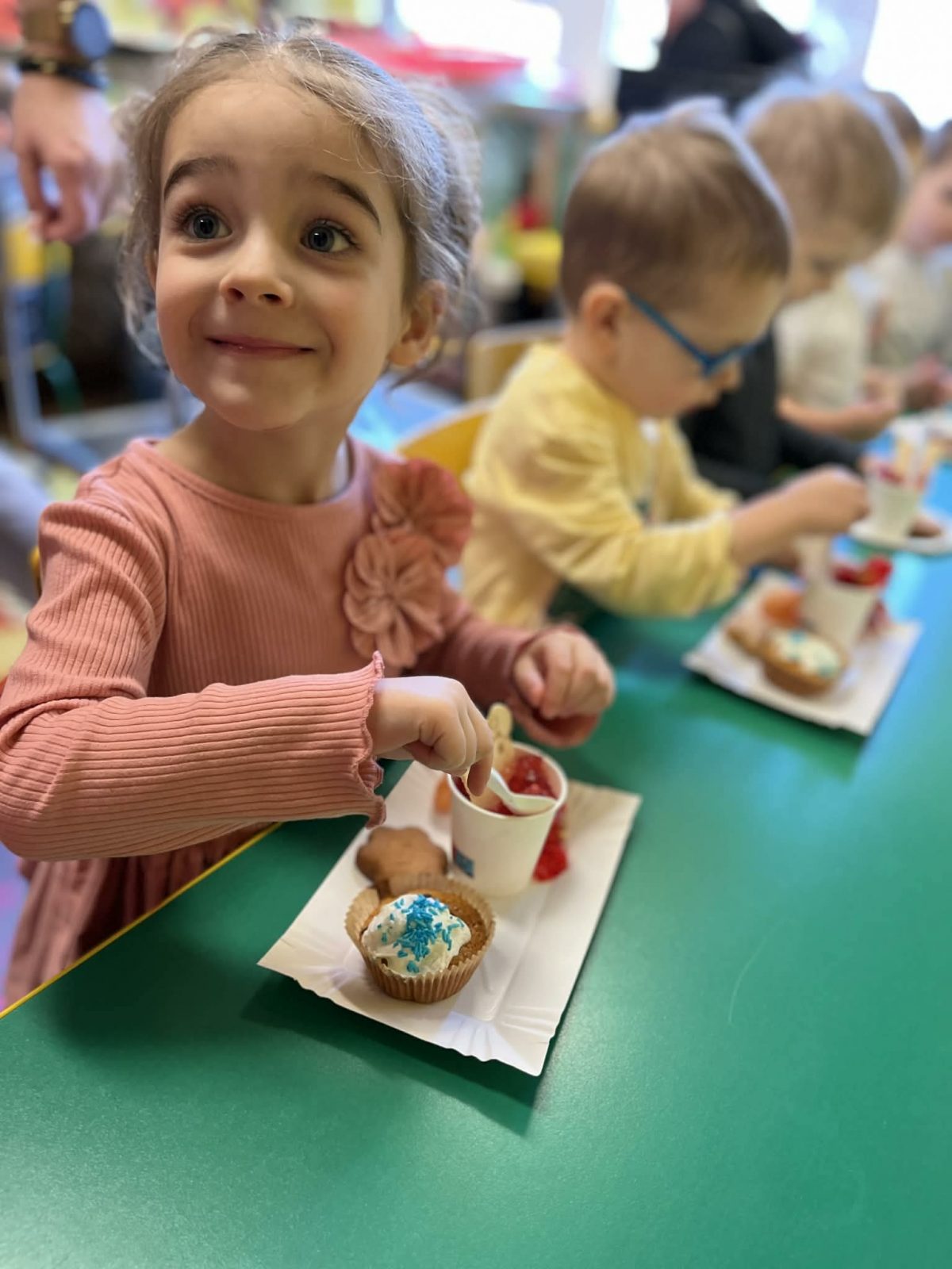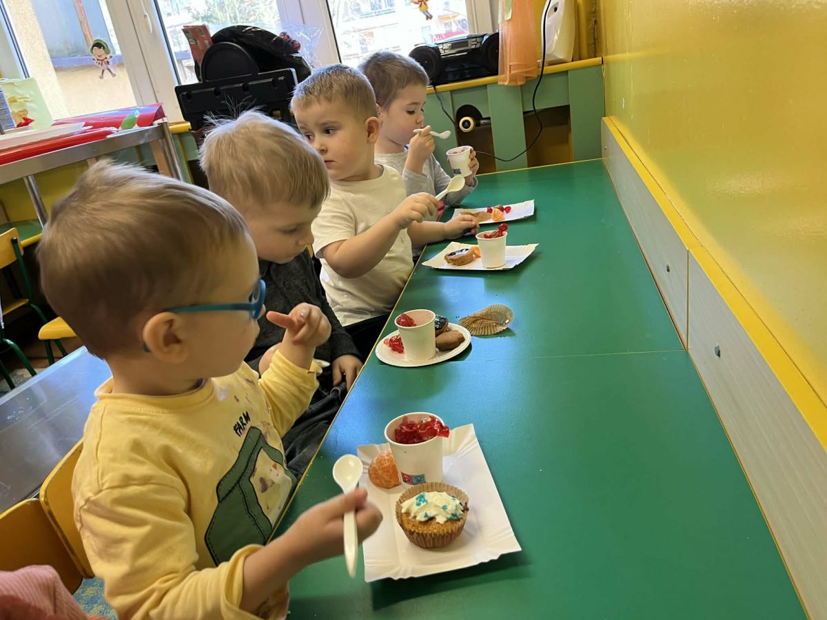 Dzieci samodzielnie przygotowały i upiekły pyszne babeczki. Największą radością była oczywiście wspólna degustacja podczas podwieczorku.