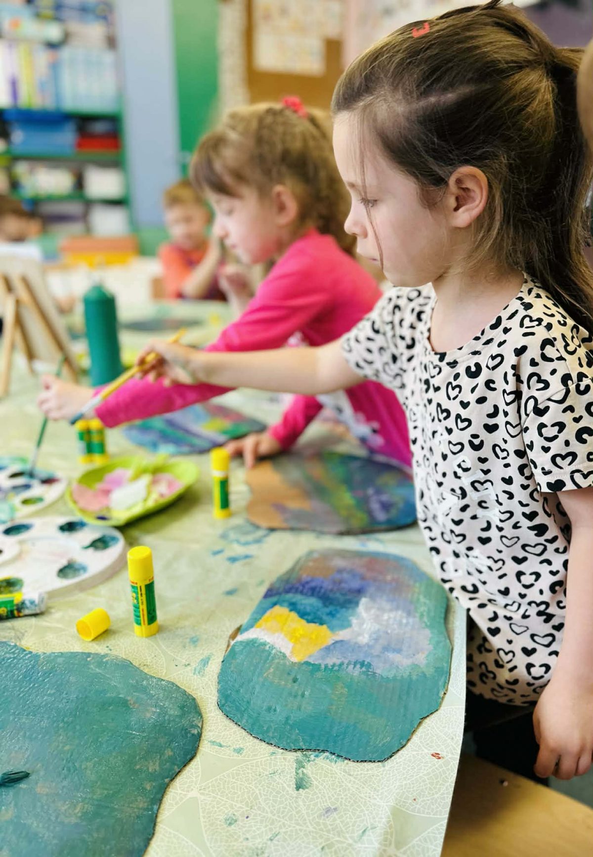 Rozwijanie myślenia matematycznego, utrwalenie pojęć para, lewa-prawa. Eksperymentowanie kolorami tworzenie wzorów, mieszanie kolorów.